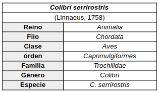Colibrí mediano | Taxonomía Trochilidae Colibrí mediano Taxonomía Descripción Comportamiento Distribución Conservación Bibliografía Monotípico