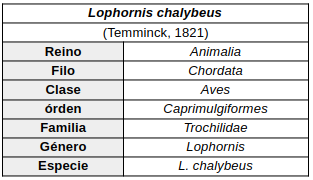 - Lophornis chalybeus klagesi: Sureste de Venezuela