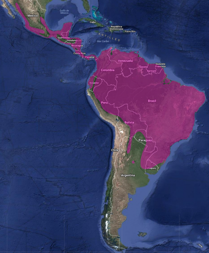 Especie endémica de América presente en la mayor parte de la América tropical continental, desde el norte y centro de México hasta el sur de Panamá y en América del Sur desde el suroeste de los Andes hasta el noroeste de Perú y, al este de los Andes, en Trinidad y desde el norte hasta el sur de Argentina (Skutch, 1966:139). En América Central habita tanto distritos húmedos como secos, desde el nivel del mar hasta zonas montañosas.