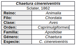 - Chaetura cinereiventris (Politípico)
