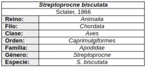 Actualmente, se reconocen dos subespecies de Streptoprocne biscutata (del Hoyo, 2020:129):